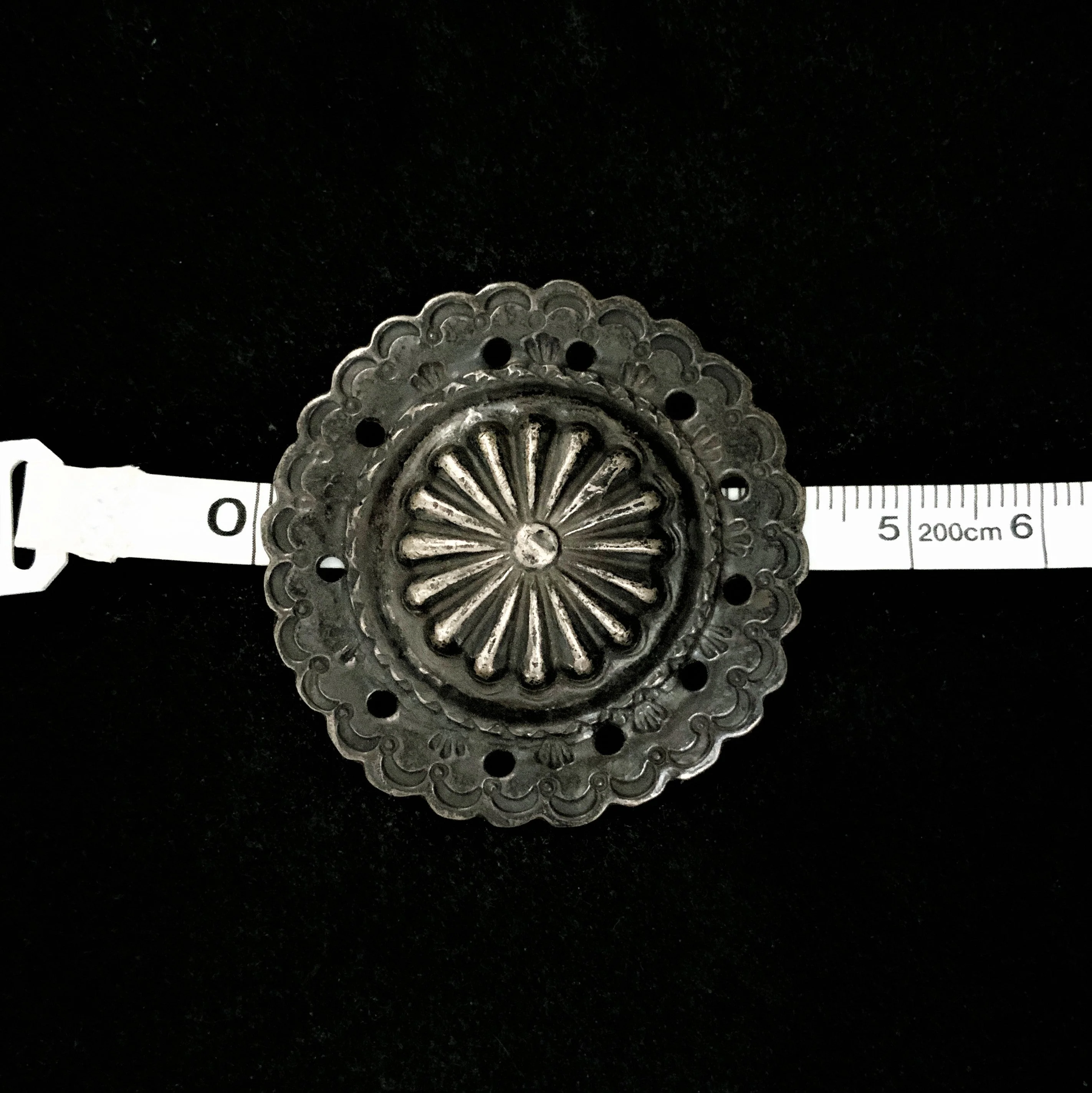 花がモチーフの大きくインパクトのあるコンチョになります。